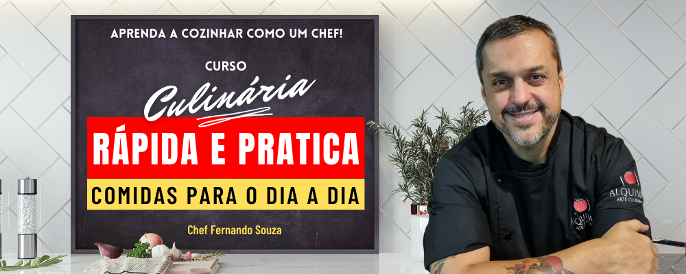 Depois de ter ensinado mais de 10 mil pessoas a cozinharem na Alquimia Arte Culinária o Chef Fernando Souza que já trabalhou para a FIFA e foi chef responsável pela alimentação da princesa Mako do Japão e sua comitiva durante a visita ao Amazonas, desenvolveu uma metodologia única para que você possa aprender a cozinhar de forma rápida e organizada diversos tipos de pratos.